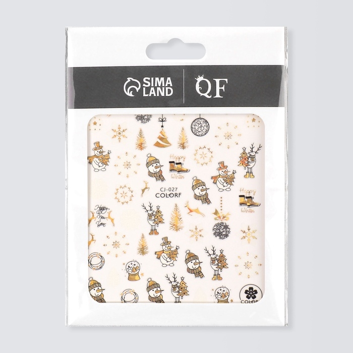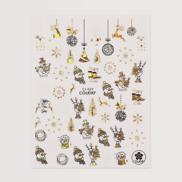 Новый год! Наклейки для ногтей «Снеговик», металлизированные
