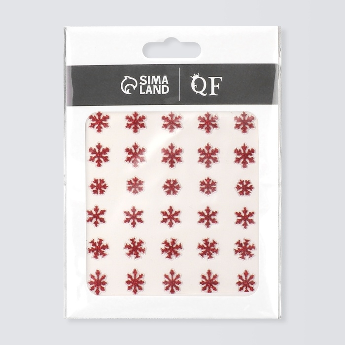 Новый год! Наклейки для ногтей «Снежинки»,с блёстками, цвет красный