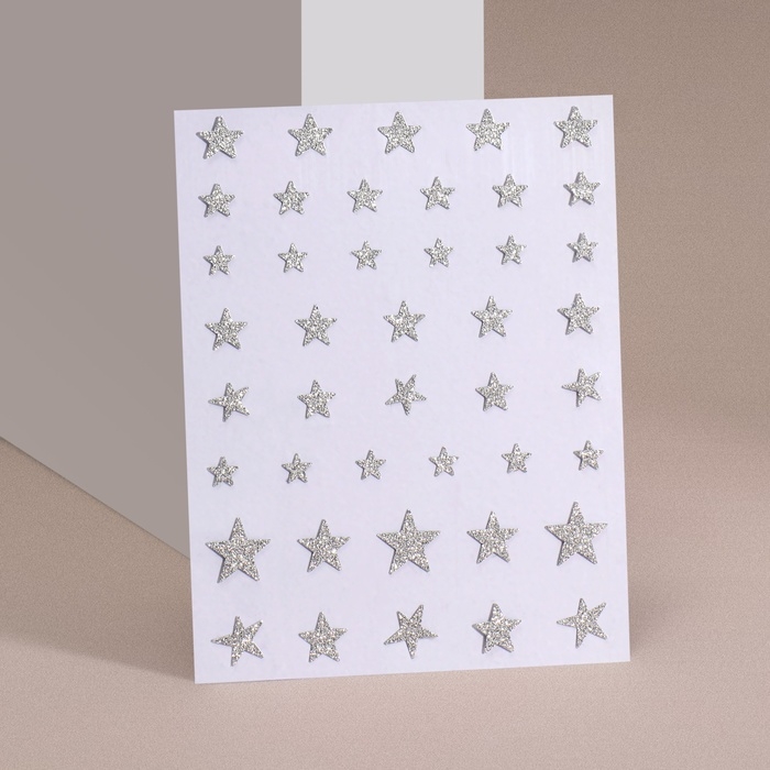 Новый год! Наклейки для ногтей «Звёзды», с блёстками, цвет серебристый