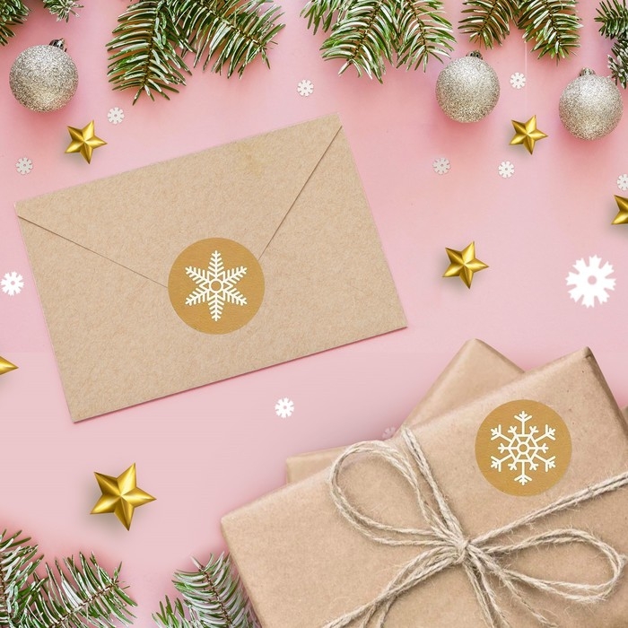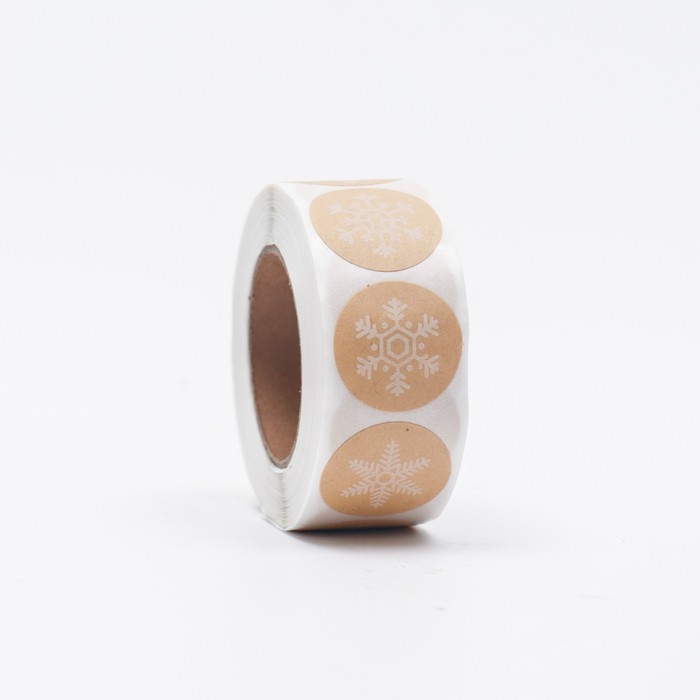 Новый год. Наклейки крафт в рулоне "Снежинки", 500 шт,2,5 х 2,5 см