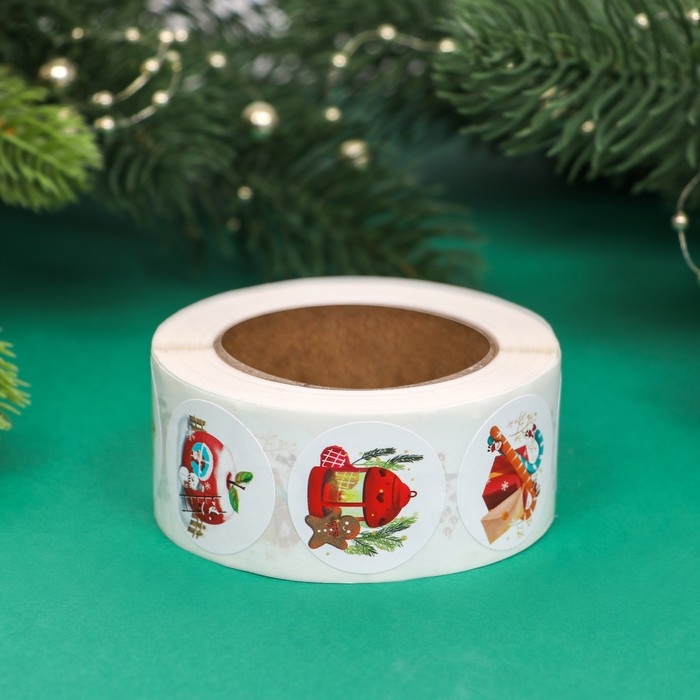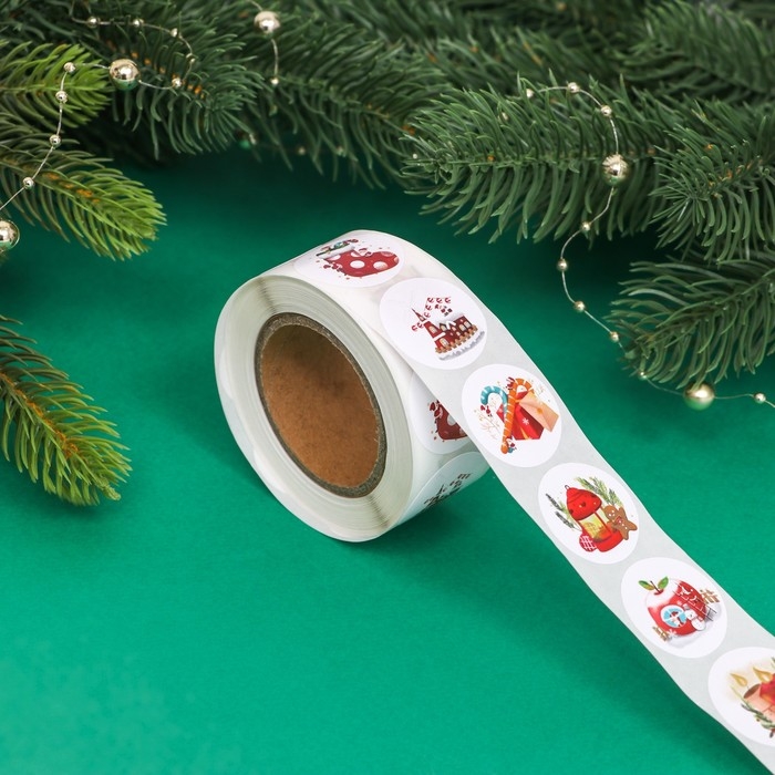 Новый год. Наклейки новогодние в рулоне "Уют", 500 шт, 2,5 х 2,5 см.