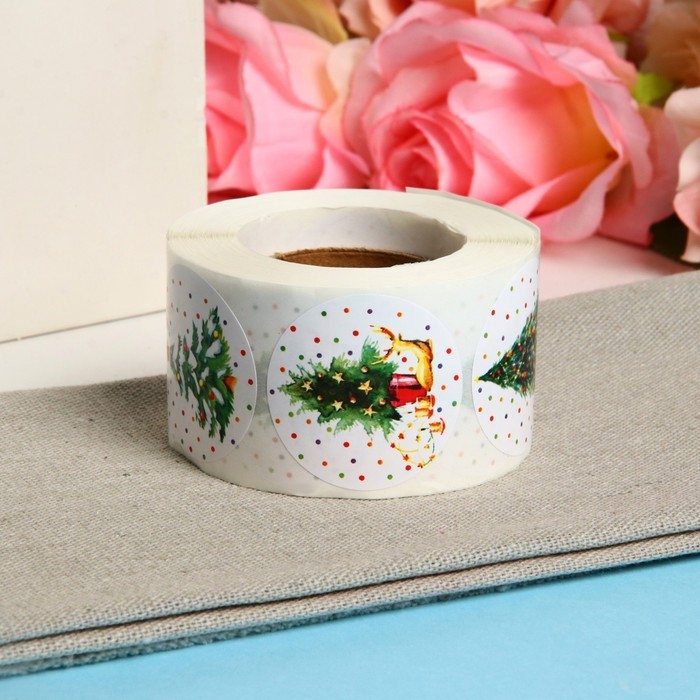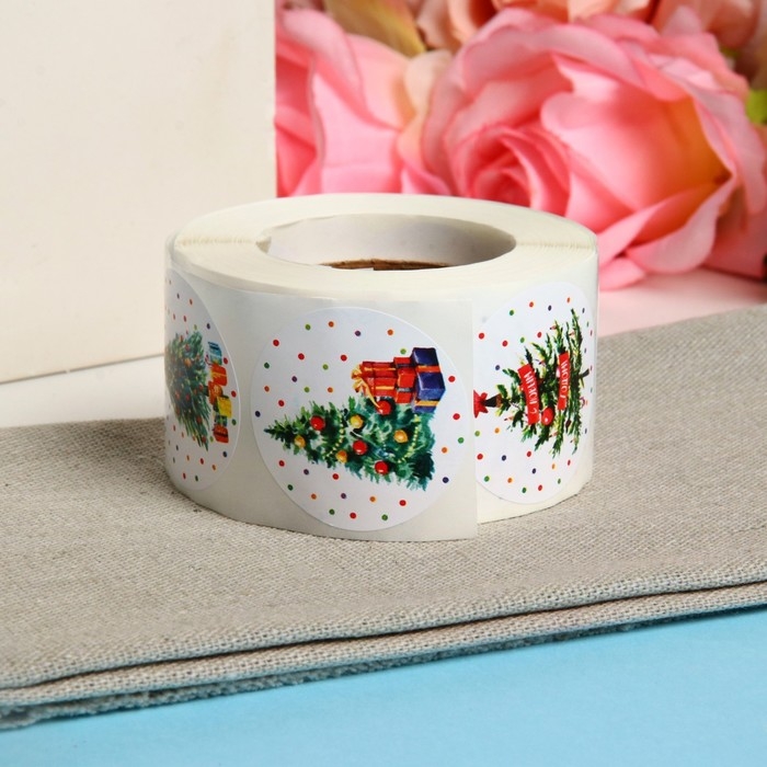 Новый год. Наклейки в рулоне "Елочки", 500 шт, 3,8 х 3,8 см