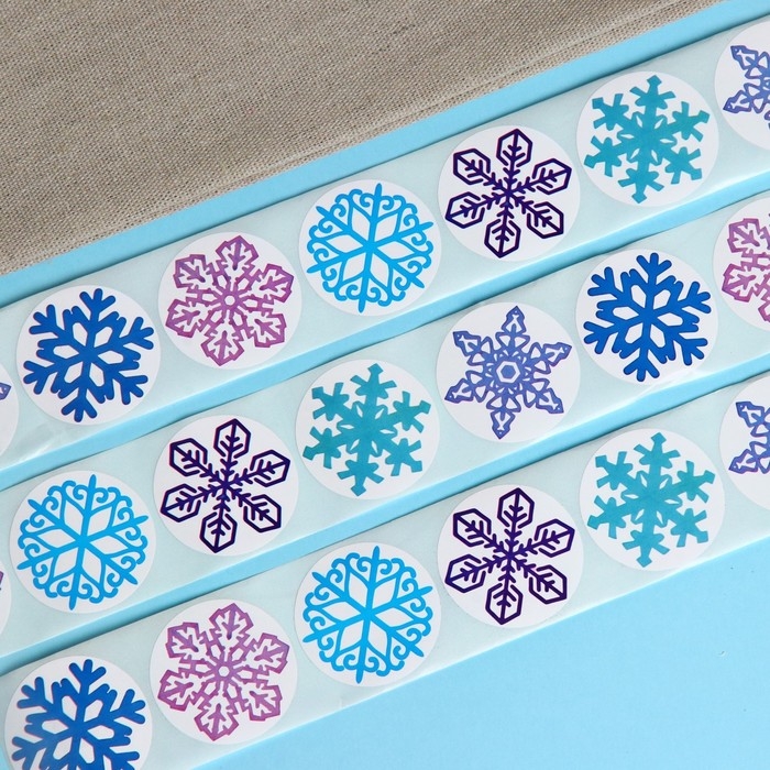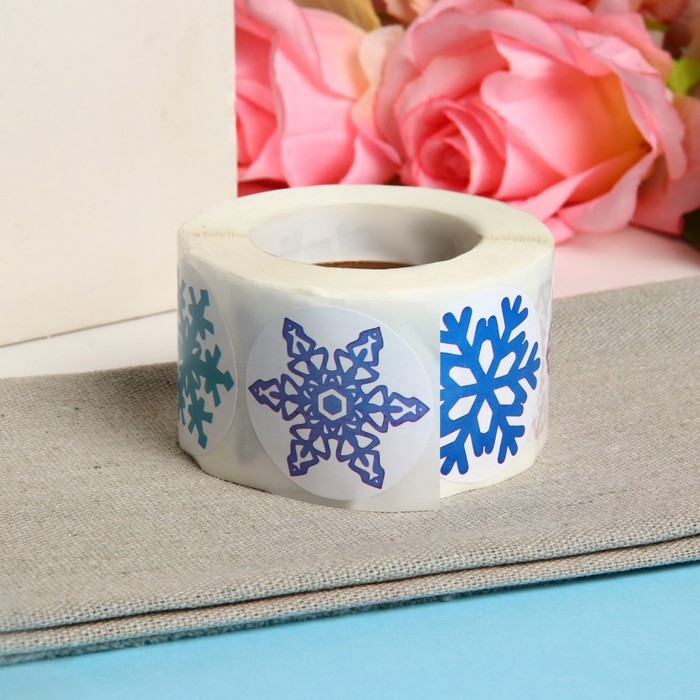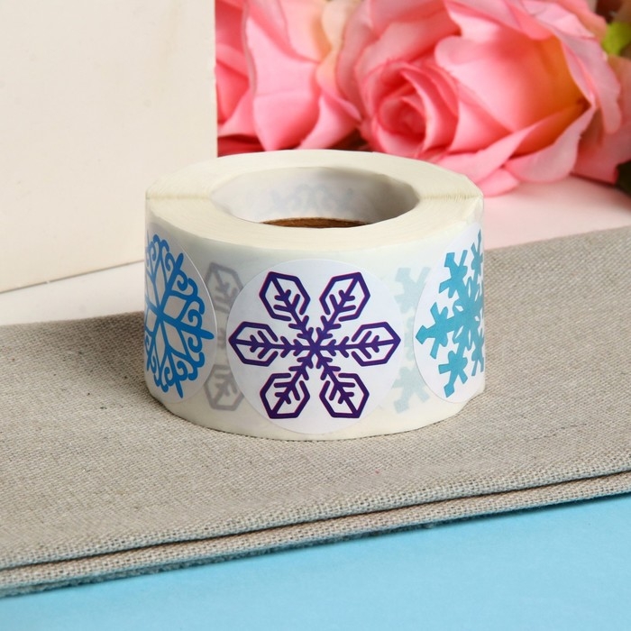Новый год. Наклейки в рулоне "Снежинки", 500 шт, 2,5 х 2,5 см
