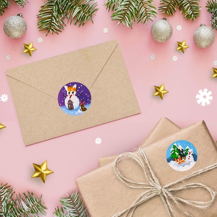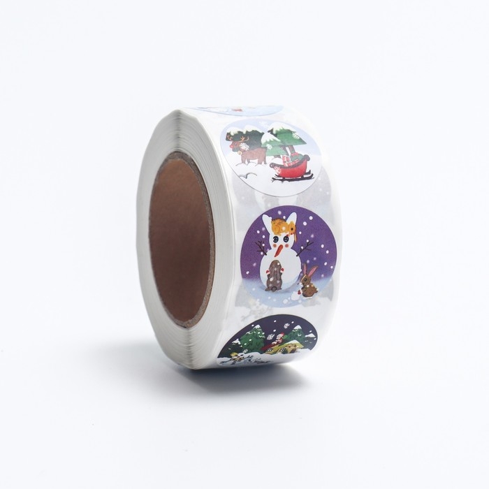 Новый год. Наклейки в рулоне "Зимушка", 500 шт, 2,5 х 2,5 см