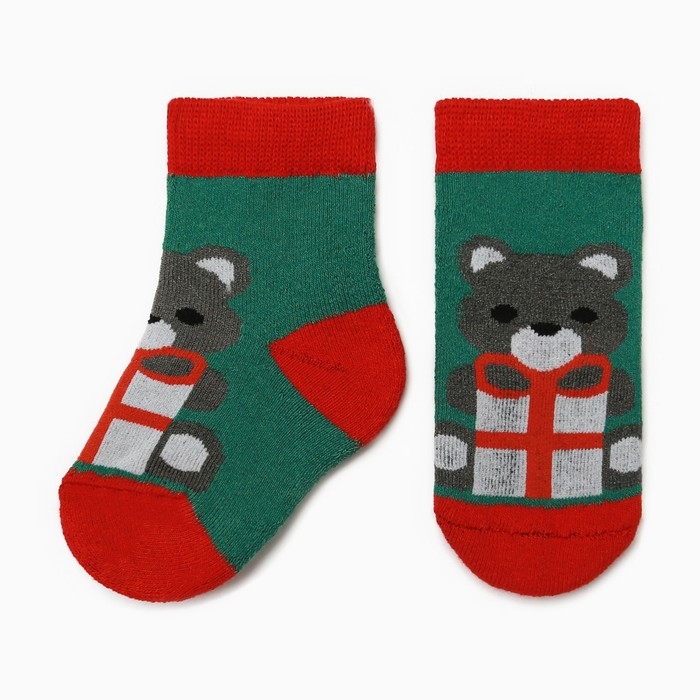 Новый год. Носки детские махровые, цвет зеленый, р-р 20-22