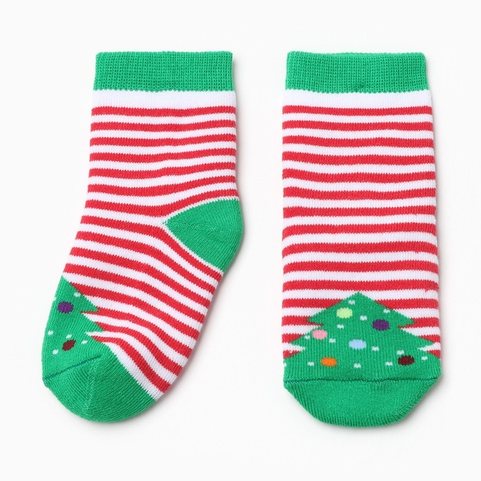 Новый год. Носки махровые детские, цвет зелёный, р-р 12-14