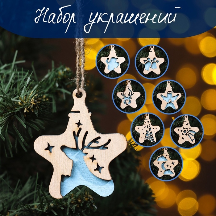 Новый год. Новогодний набор "звездочки" 8 штук, 2025, цвет голубой