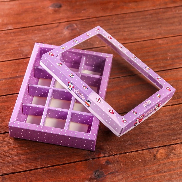 Коробка под 9 конфет с обечайкой, сиреневый, 14,5 х 14,5 х 3,5 см