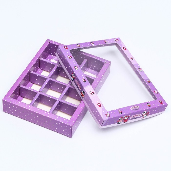 Коробка под 8 конфет + шоколад «с Новым Годом», 17.7×17.85×3.85 см