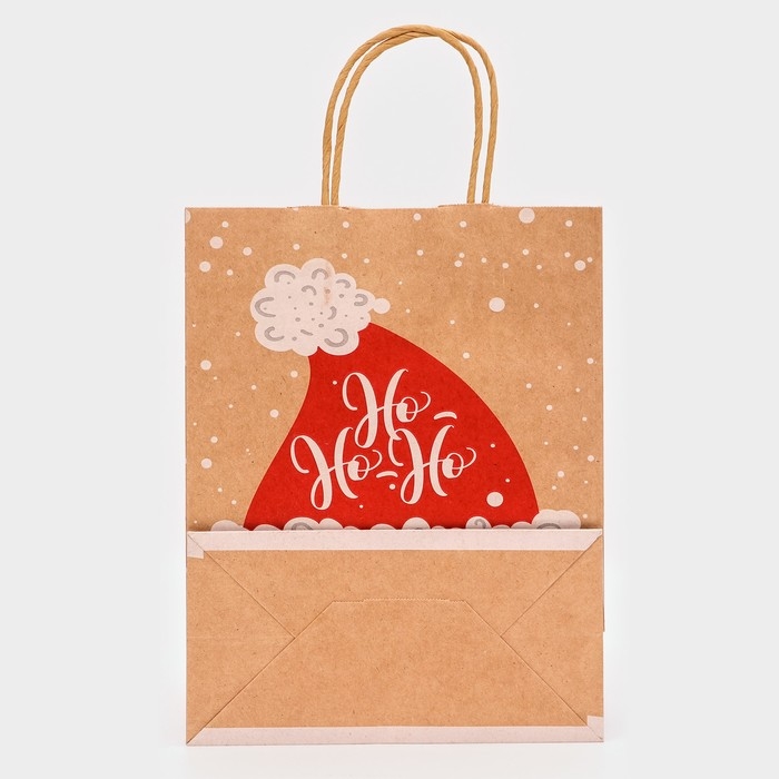 Новый год. Пакет бумажный подарочный новогодний крафт "Дед Мороз", 27 х 21 х 11 см.