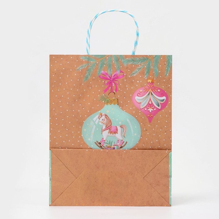 Новый год. Пакет бумажный подарочный новогодний крафт "Новогоднии игрушки" 18 х 22,3 х 10 см.