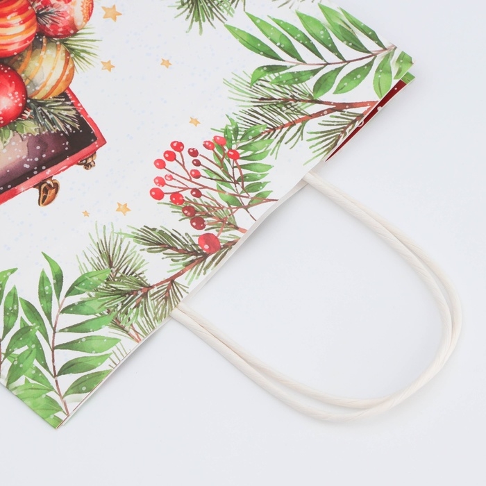 - Новогодний подарочный пакет с ярким, красочным рисунком создаст праздничное настроение.