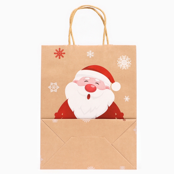 Новый год. Пакет бумажный подарочный новогодний крафт с тиснением "Дед Мороз", 27 х 21 х 11 см.