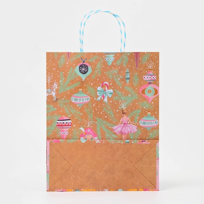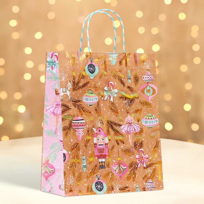 Новый год. Пакет бумажный подарочный новогодний крафт "Щелкунчик" 26 х 32 х 12 см.