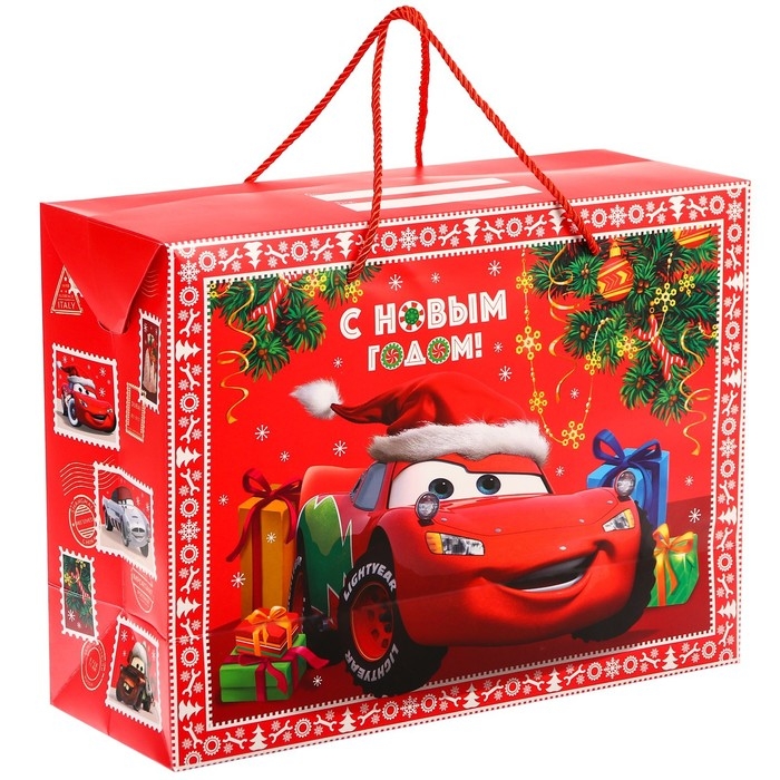 Новый год. Пакет-коробка "С Новым Годом!", 19х40х30 см, Тачки