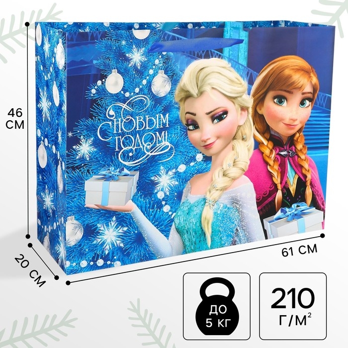 Новый год. Пакет подарочный, 61х46х20 см, упаковка, Холодное сердце