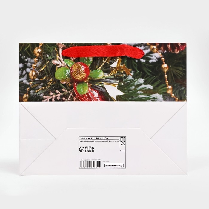 Подарочный пакет, ламинированный и новогодний, размером 23 х 18 х 10 см — это идеальный выбор для упаковки ваших праздничных сюрпризов. Этот пакет сочетает в себе практичность и элегантный дизайн, который украсит любой подарок и создаст особую атмосферу волшебства и радости.