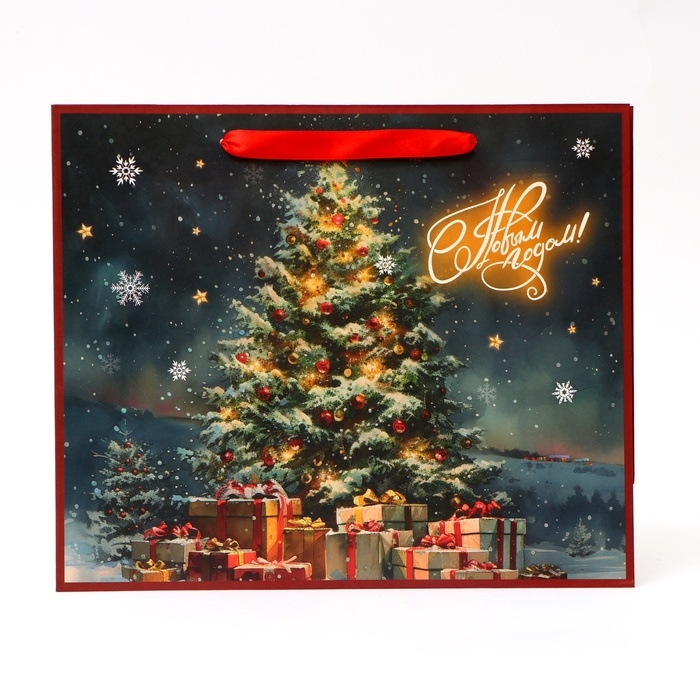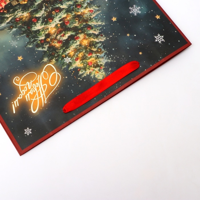 Новый год. Пакет подарочный новогодний бумажный, "Ёлка", 31 х 26 х 11 см.