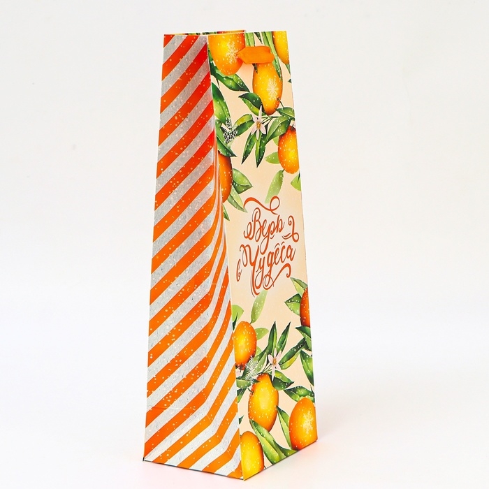 Новый год. Пакет подарочный новогодний под бутылку «Апельсины», 13 x 36 x 10 см.