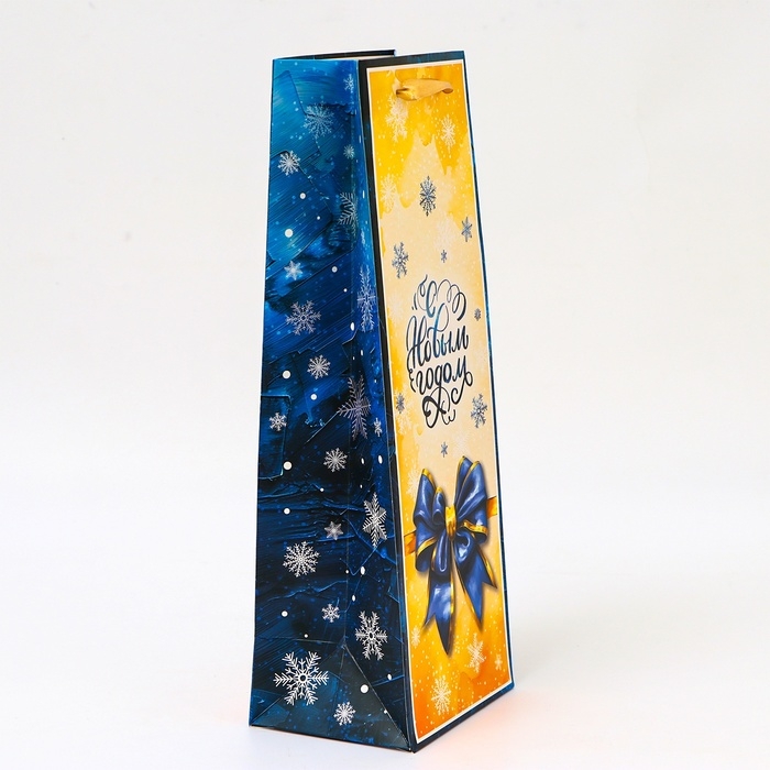 Новый год. Пакет подарочный новогодний под бутылку «Бант», 13 x 36 x 10 см.