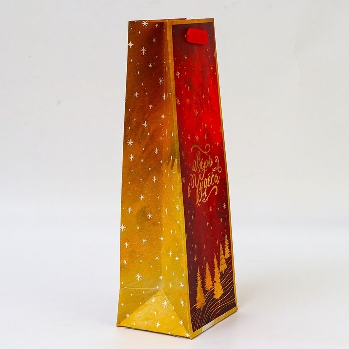 Новый год. Пакет подарочный новогодний под бутылку «Верь в чудеса», 13 x 36 x 10 см.