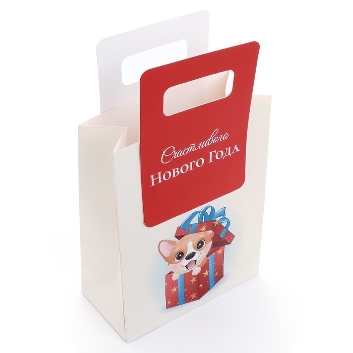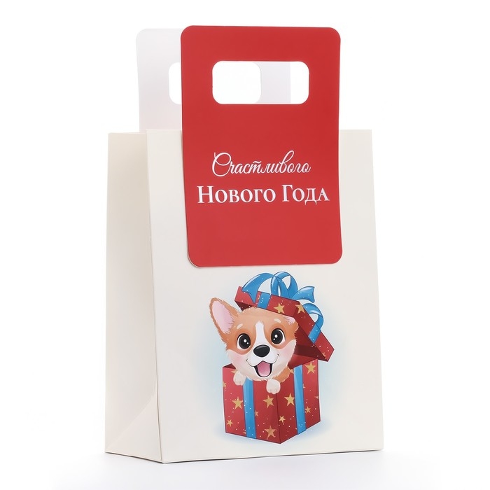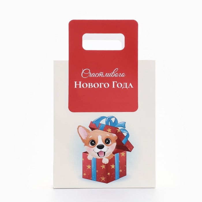 Подарочный пакет с вырубной ручкой, размером 18 х 23 х 9 см, с новогодним дизайном – это стильное и удобное решение для упаковки праздничных подарков.