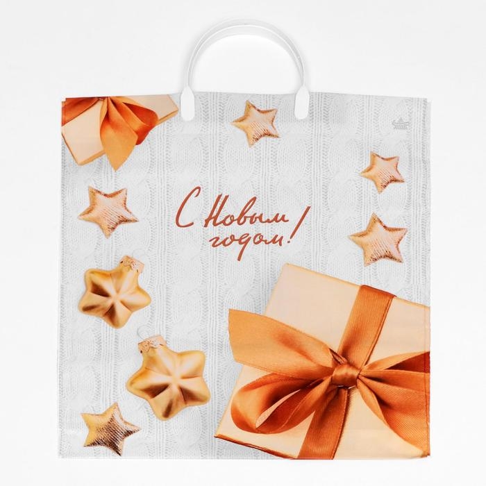 Новый год. Пакет " Вязаный узор", полиэтиленовый с пластиковой ручкой, 43 х 39 см.