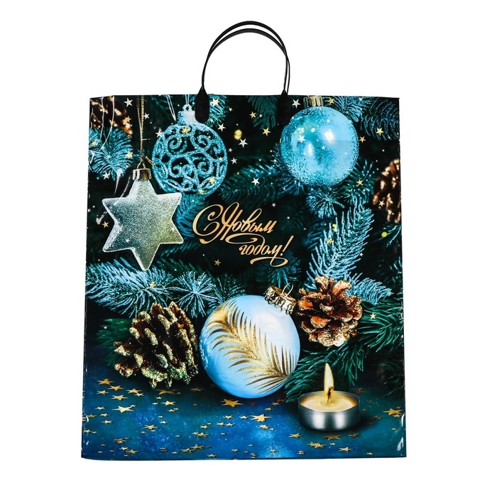 Новый год. Пакет "Золотые шишки", полиэтиленовый с пластиковой ручкой, 40 х 44 см.