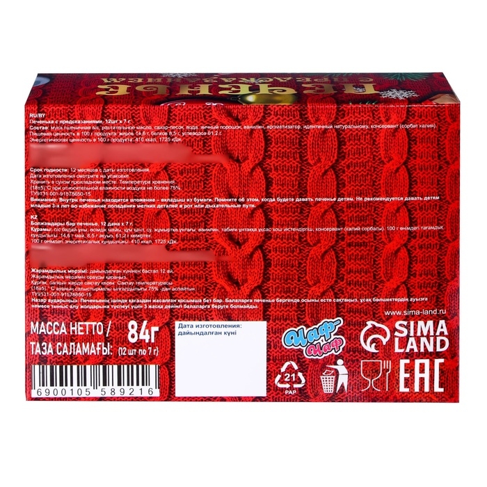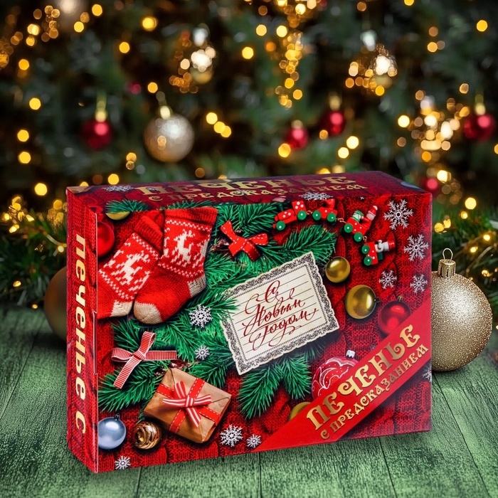 Новогоднее печенье с предсказанием "С Новым годом" — это уникальный способ добавить волшебства и интриги в ваше новогоднее празднование. Каждое печенье скрывает в себе небольшое предсказание, которое станет приятным сюрпризом для всех участников праздника. Упакованное в яркую и праздничную коробку, оно не только радует своим вкусом, но и создает атмосферу ожидания и чуда, присущую новогодним праздникам.Такой набор станет отличным подарком для друзей и близких, добавляя нотку радости и надежды в их жизнь. Красивое оформление коробки делает его идеальным для праздничного стола или в качестве оригинального сувенира. Печенье с предсказанием подарит не только сладкий вкус, но и теплые пожелания на наступающий год, делая встречу 2025 года особенно запоминающейся и волшебной.