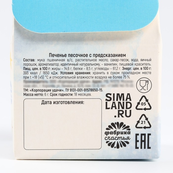 Печенье песочное с предсказаниями "Стандарт", 12 шт., 84 г