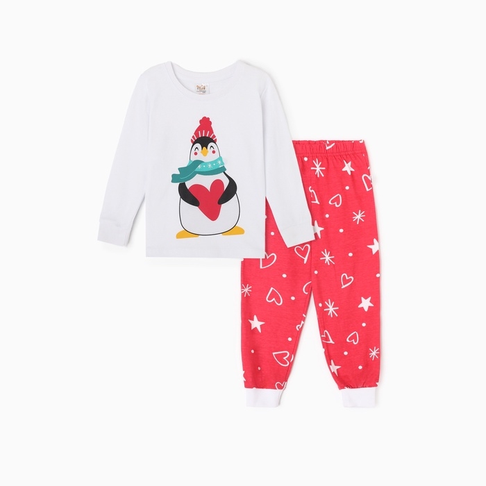 Новый год. Пижама детская НГ Пингвин, цвет белый/красный, рост 104