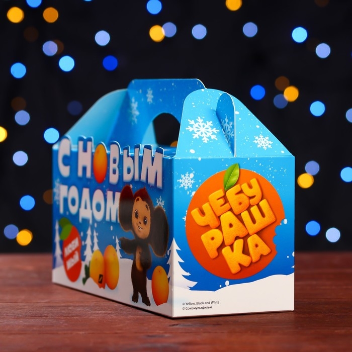 Новый год. Подарочная коробка "Чебурашка", 25 х 9,5 х 11 см.