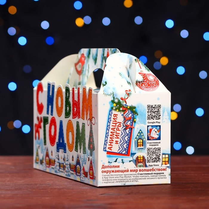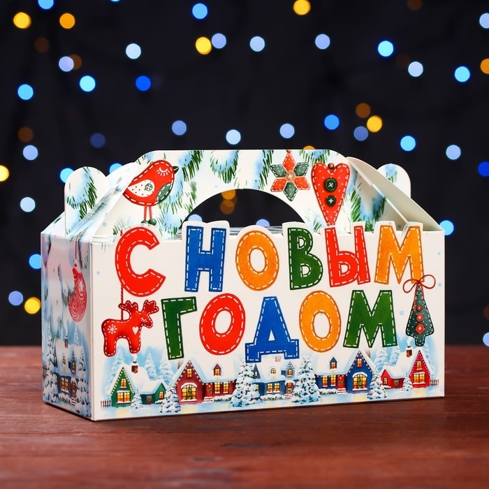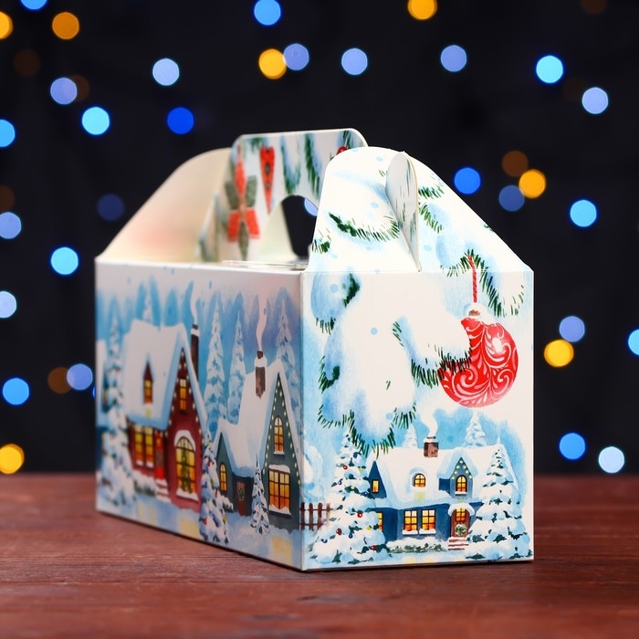 Новый год. Подарочная коробка "Домики" , 25 х 9,5 х 11 см.