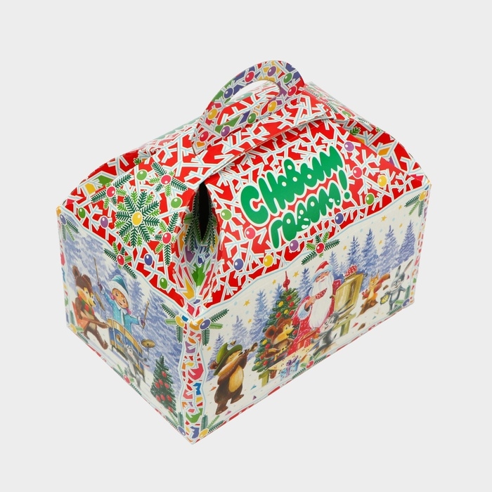Коробка выполнена из качественных материалов, которые обеспечивают сохранность содержимого. Она имеет яркий и красочный дизайн, который отражает атмосферу Нового года.