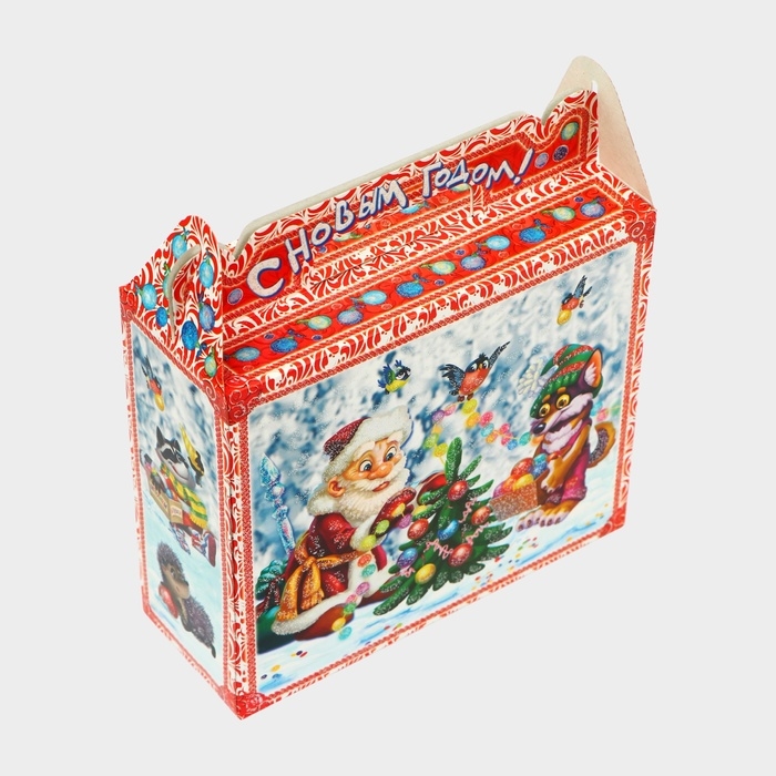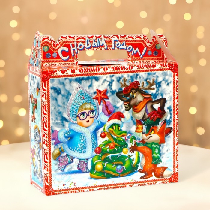 Коробка выполнена из качественных материалов, которые обеспечивают сохранность содержимого. Она имеет яркий и красочный дизайн, который отражает атмосферу Нового года.
