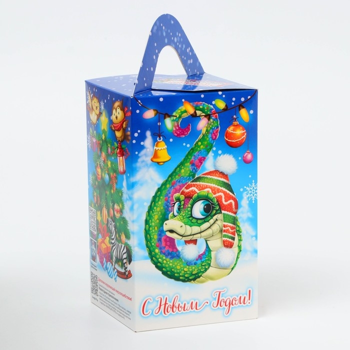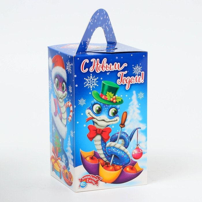 Новый год. Подарочная коробка Новогодняя Четырехгранка большая "Змейки" с анимацией 10*10*18 см.