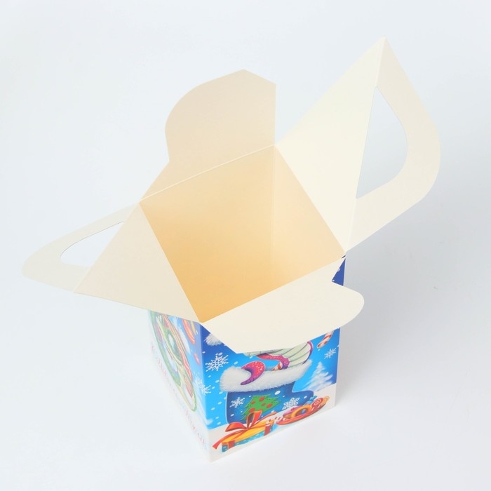Наполнить коробку можно конфетами или небольшими новогодними сувенирами. Яркий и оригинальный рисунок на коробке создаст праздничное настроение и подчеркнёт тематику праздника. Такая упаковка сделает ваш подарок по-настоящему особенным и запоминающимся.