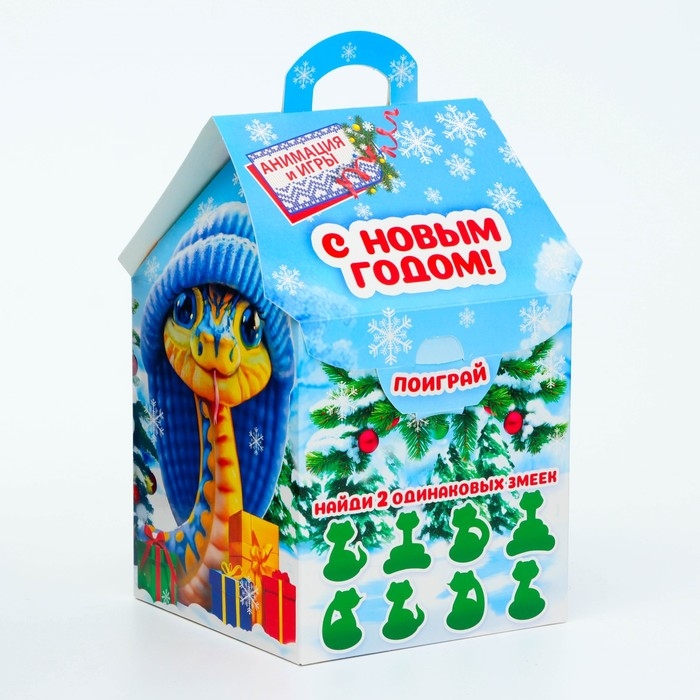 Новый год. Подарочная коробка Новогодняя Домик новый "Символ года" с анимацией 12 х 12 х 19 см.