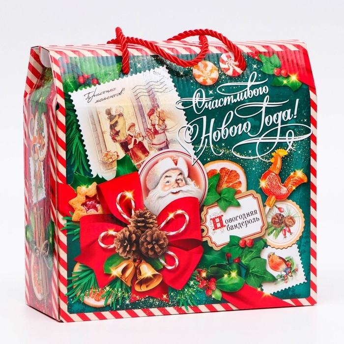 - Коробка выполнена из высококачественного картона, который не только прекрасно удерживает форму, но и гарантирует надёжность и долговечность. Ярко оформленная, она украшена красочными новогодними мотивами. Каждый элемент дизайна продуман до мелочей, чтобы создать ощущение праздника и сказки.