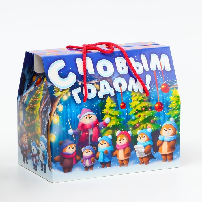 Новый год. Подарочная коробка Новогодняя Коробка-Кейс "Хор" с верев. ручками с анимацией 20,5*12*18см.