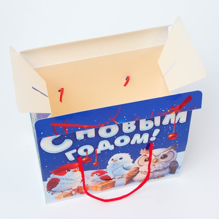 Наполнить коробку можно конфетами или небольшими новогодними сувенирами. Яркий и оригинальный рисунок на коробке создаст праздничное настроение и подчеркнёт тематику праздника. Такая упаковка сделает ваш подарок по-настоящему особенным и запоминающимся.