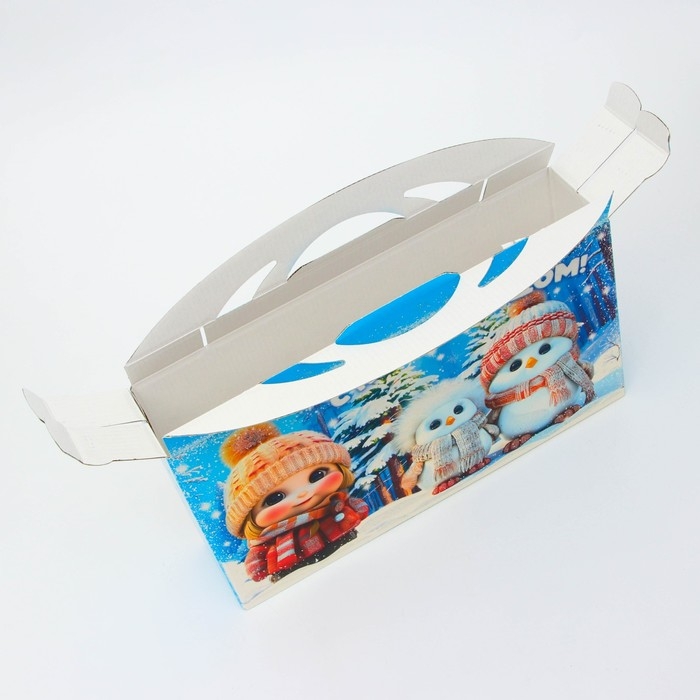 Новый год. Подарочная коробка Новогодняя Портфель макси широкий "Малыши" с анимацией 37 x 8 x 20,2 см.
