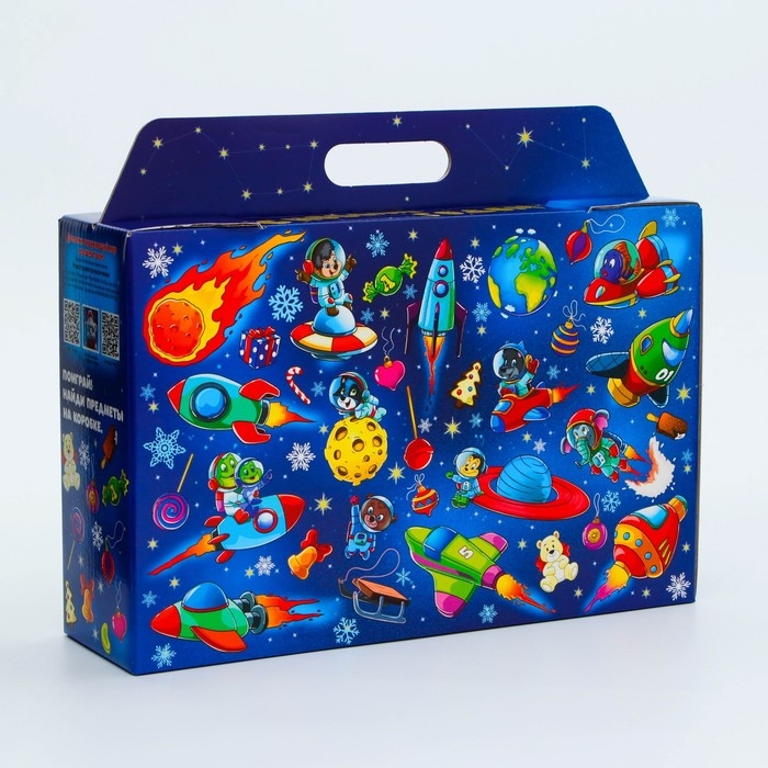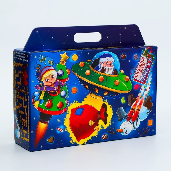 Новый год. Подарочная коробка Новогодняя Портфель широкий "Космос" с игрой и анимацией 31 х 8,5 х 20,3 см.