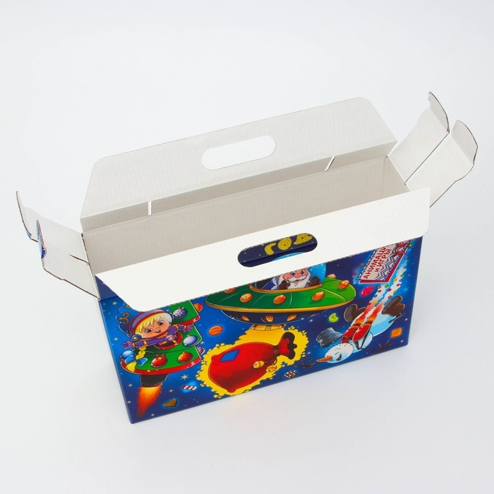 Подарочная новогодняя коробка предназначена для использования на утренниках и для подарков под ёлку для детей. Эта коробка создана специально для того, чтобы сделать праздник еще более ярким и запоминающимся.