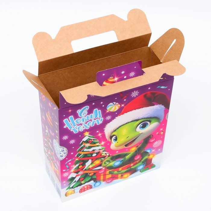 Коробка выполнена из качественных материалов, которые обеспечивают сохранность содержимого. Она имеет яркий и красочный дизайн, который отражает атмосферу Нового года.