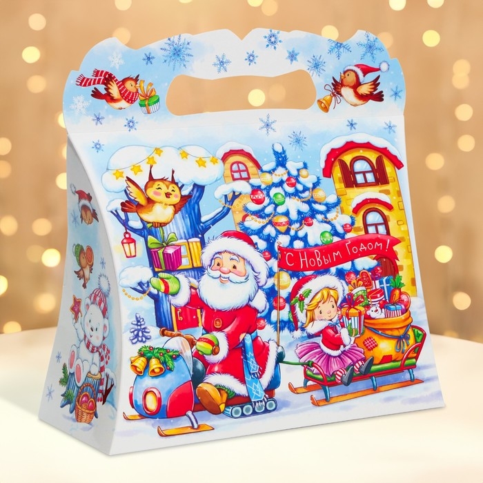 Подарочная новогодняя коробка предназначена для использования на утренниках и для подарков под ёлку для детей. Эта коробка создана специально для того, чтобы сделать праздник еще более ярким и запоминающимся.