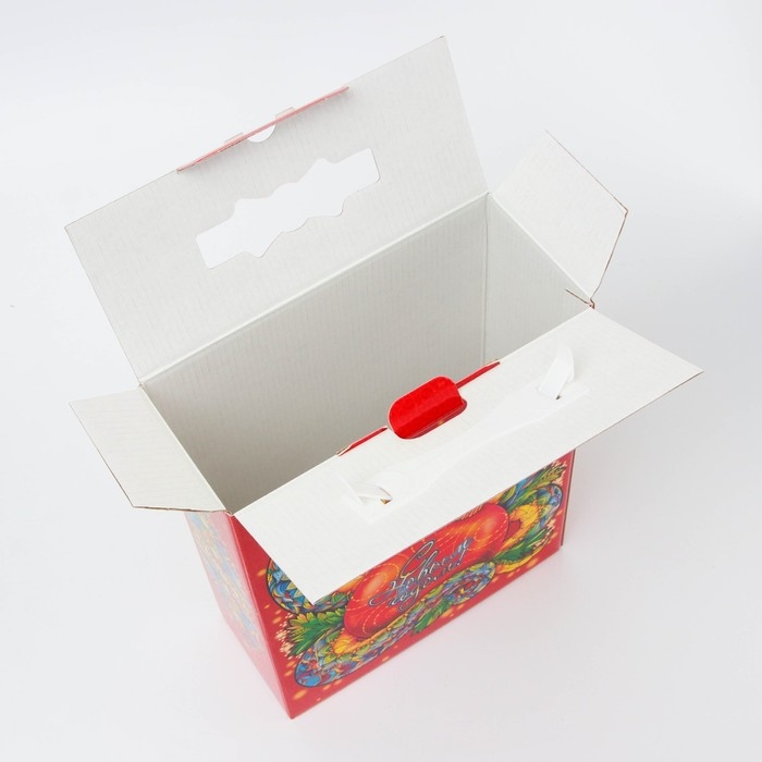 Новый год. Подарочная коробка, Новогодняя "Восточная змея" с пластиковой ручкой 23,5*9,5*30 см.