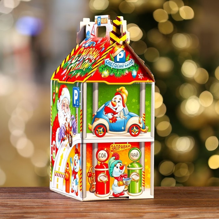 Новый год. Подарочная коробка "Парковка Снеговиков", 17,5 х 14,5 х 29 см.