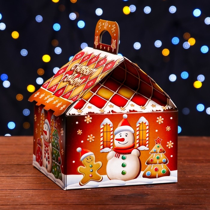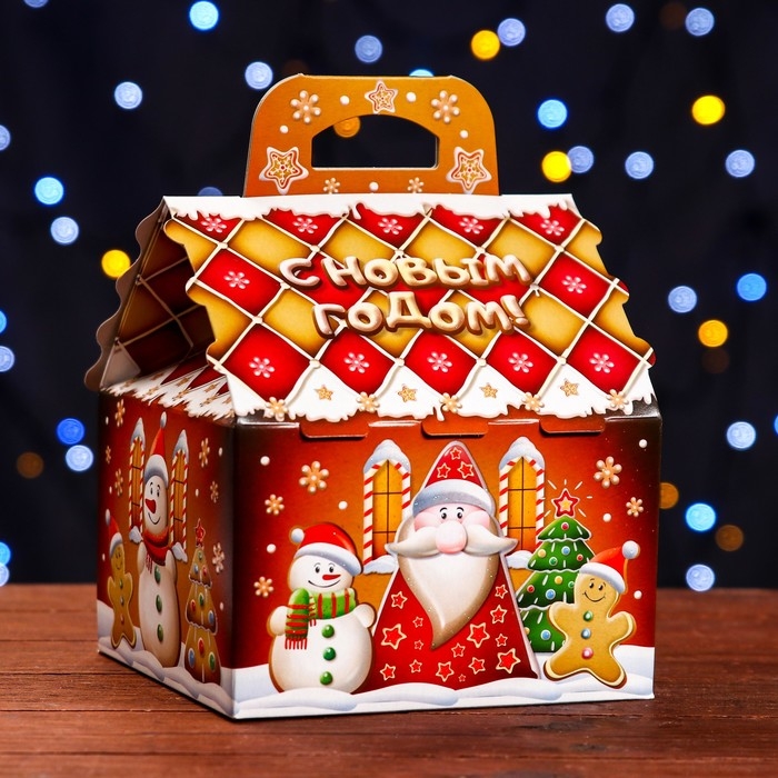 Новый год. Подарочная коробка "Пряничный" 16 х 16 х 22 см.