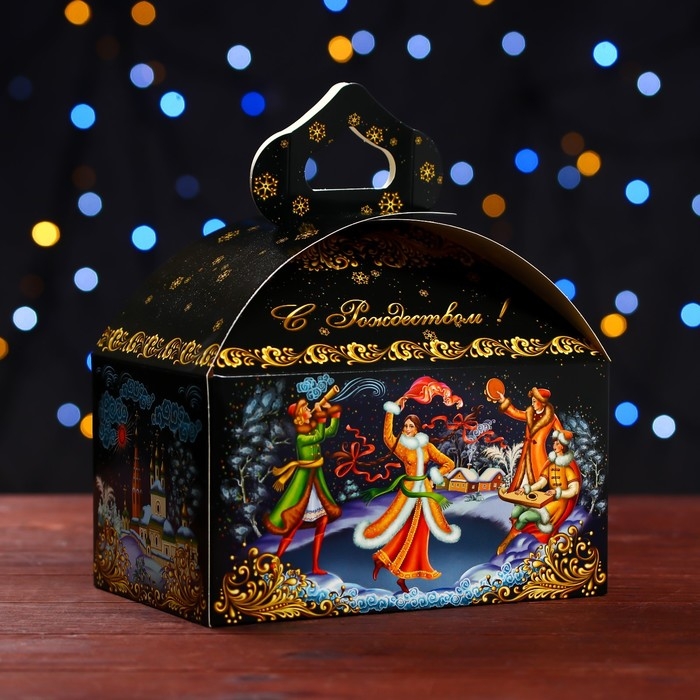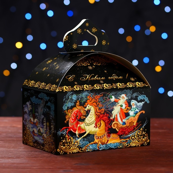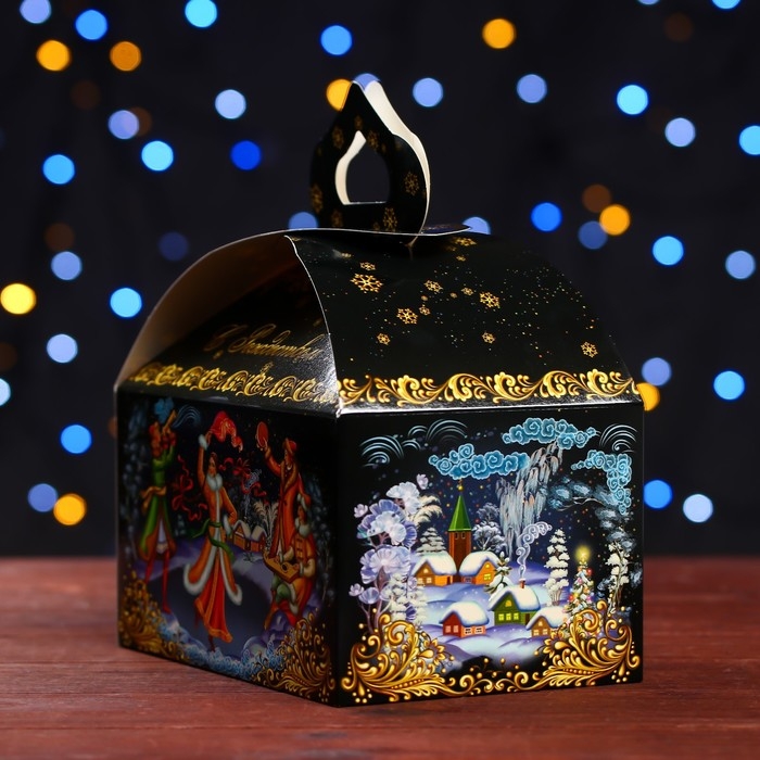 Новый год. Подарочная коробка "Зимние гулянья" , Сундучок 18,5 х 12,5 х 16,5 см.